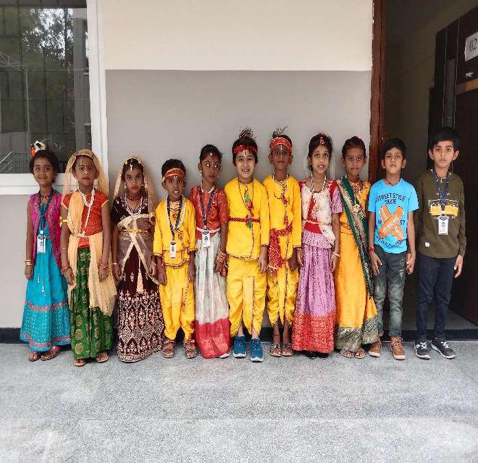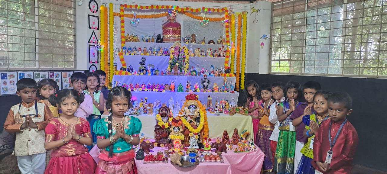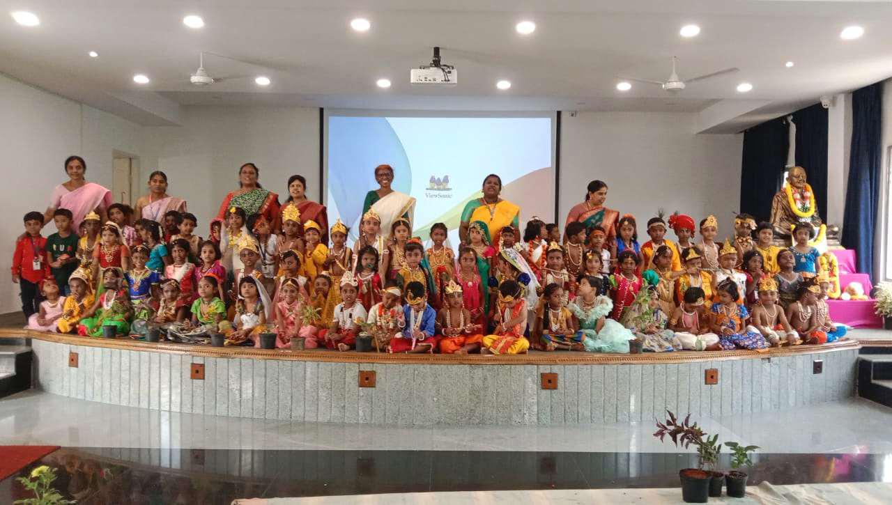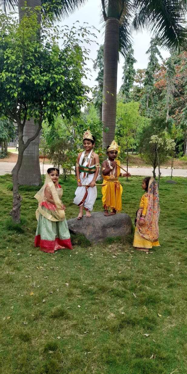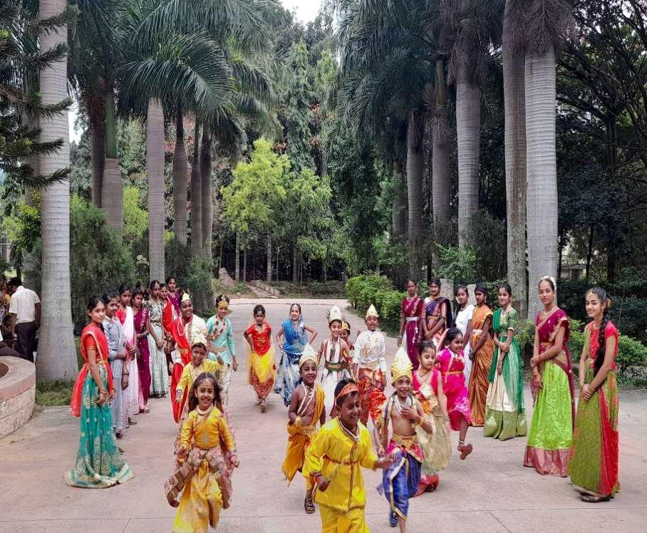 To seek the blessings of Lord Krishna, Janmashtami was celebrated at Mahatma Vidyalaya on September 7th 2023 with mirth and joy. The fragrance of flowers, soothing aroma of camphor and the jingle of bells filled the air. The students dressed up as lord Krishna and Radha, complete with flutes, peacock feathers.