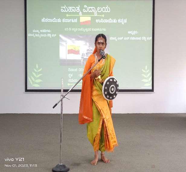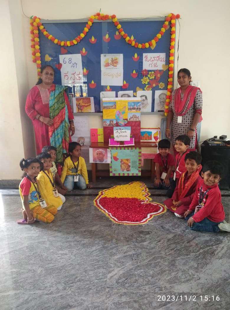 The Rajyotsava day is the state festival of Karnataka and is observed on November 1st every year. The day is celebrated to commemorate the birthday of Karnataka as the state was formed on this day. Kannada Rajyotsava was celebrated in Mahatma Vidyalaya with gusto, joy, and vigour on November 1, 2023, by our kindergarten children.