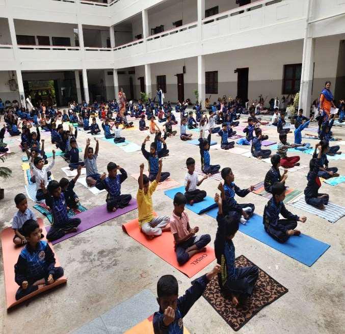 The program started with the tree plantation at the hands of faculty members and students.International Yoga Day is observed every year on 21st June to create awareness about the ancient practice and to celebrate the physical and spiritual prowess that yoga has brought to the world. On 21st June 2023, the students of Mahatma Vidyalaya celebrated International Yoga Day with great vigour and enthusiasm, with the theme, “Yoga for Vasudhaiva Kutumbakam”, effectively encapsulating our collective aspiration for ‘One Earth, One Family and one Future’. Students from classes Kindergarten to 10th took part in the celebration.